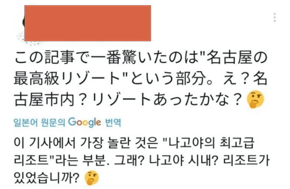 '나고야에 고급 리조트 없으니까 기사도 거짓말아닐까?' 하는 반응들 이였습니다.