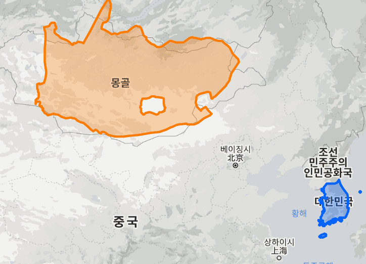 몽골과 비슷한 정도의 크기네요.
