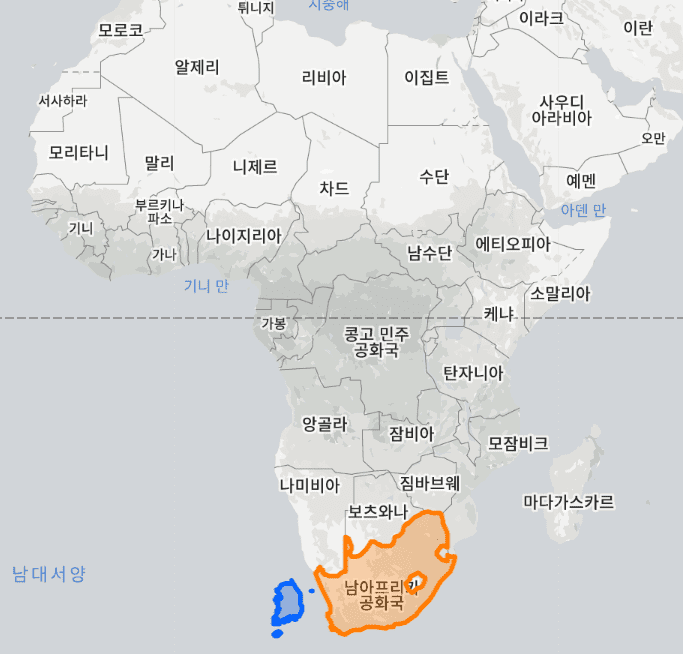 남아프리카 공화국 vs 한국 실제 크기, 면적 비교 지도