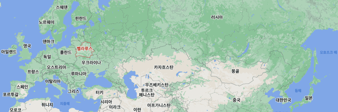 한국과 겹쳐보니 벨라루스가 확실히 큰게 느껴진다.