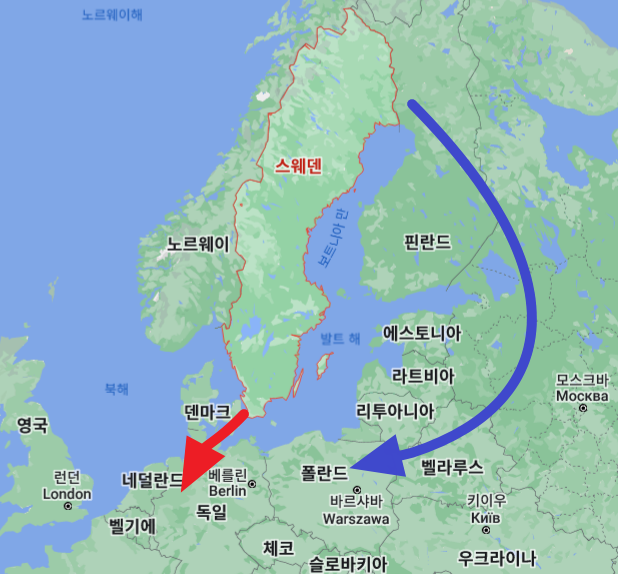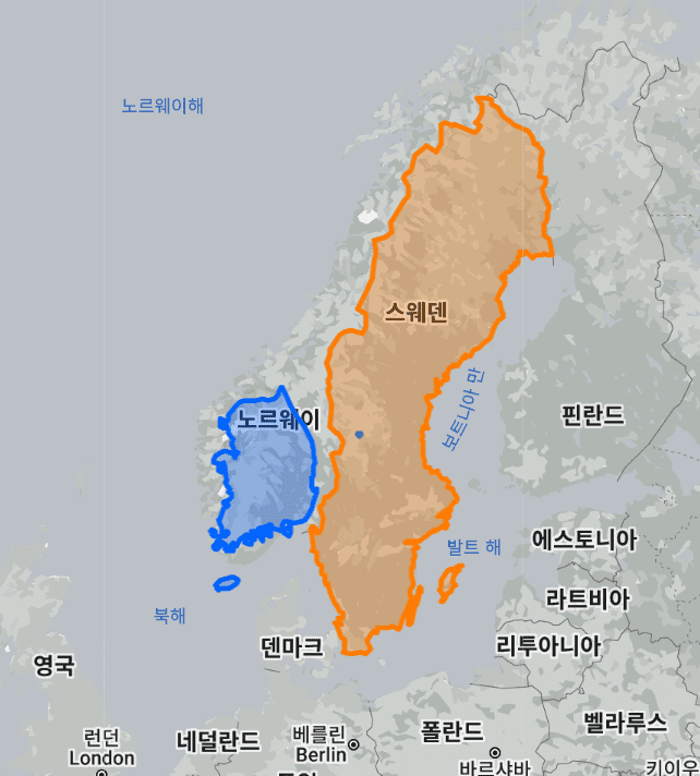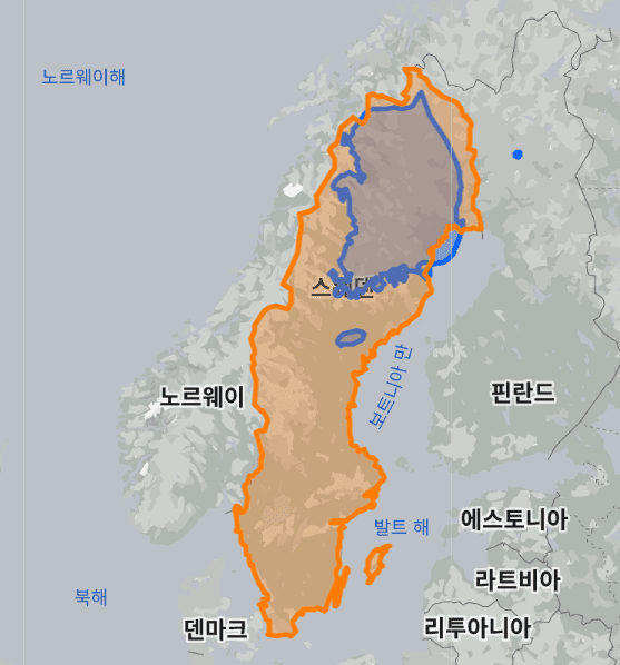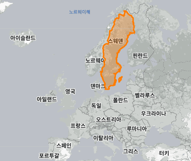 스웨덴 vs 한국 실제 크기, 면적 비교 지도