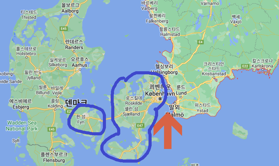 스웨덴 남부 말뫼에서 덴마크 섬인 셀란섬, 퓐섬을 지나서 유럽대륙을 육로로 직접 갈수 있다.