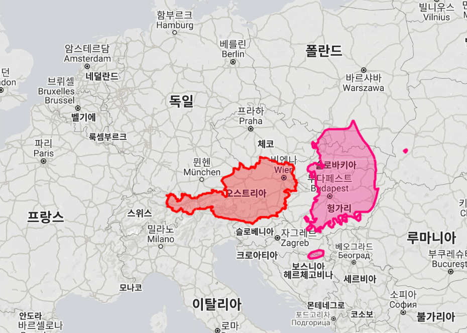 오스트리아와 한국이 바로 옆에 있다면 크기가 얼마나 차이가 있을까? 직접 지도를 옆에 두고 비교 해 보았다.