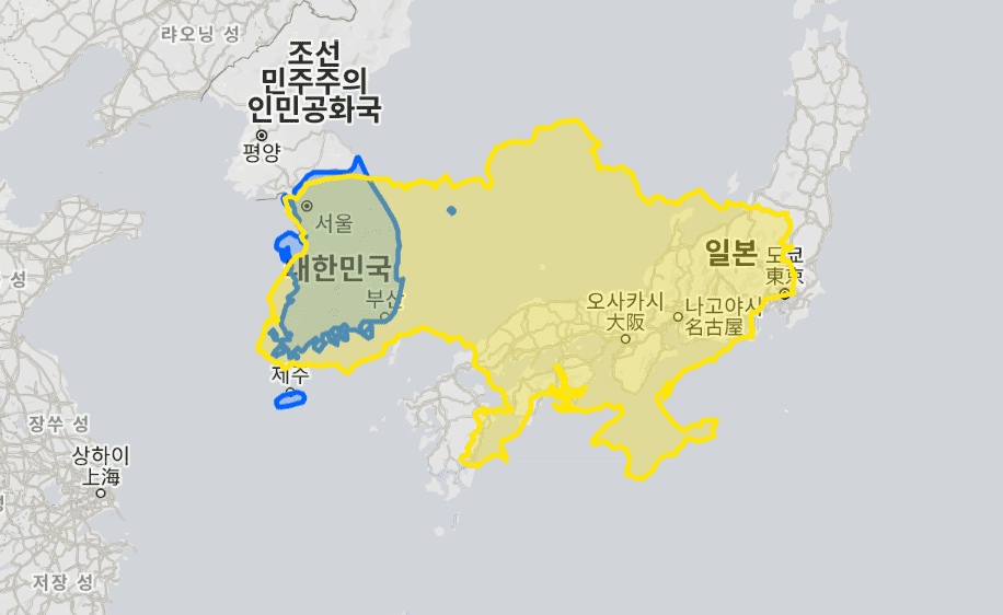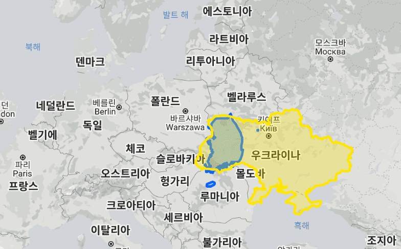 우리나라 안에 ‘우크라이나’가 있을 때에 지도 비교