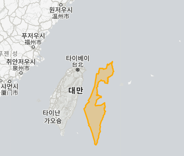 비교하자면 대만하고 비슷한 정도의 크기이다.