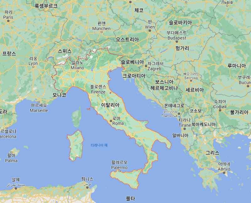 이탈리아 vs 한국 실제 크기, 면적 비교 지도
