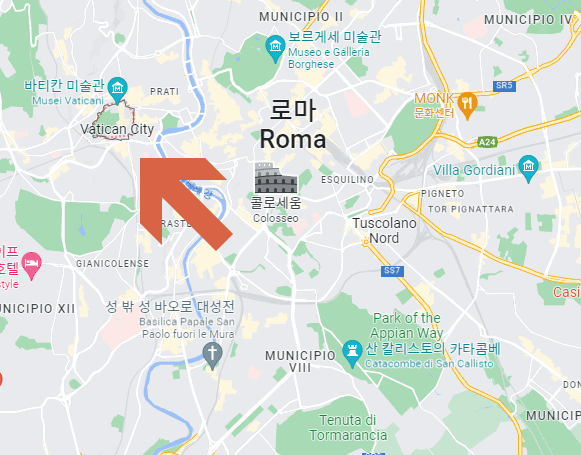 그 왼쪽에는 바티칸 시티가 위치해 있어요.