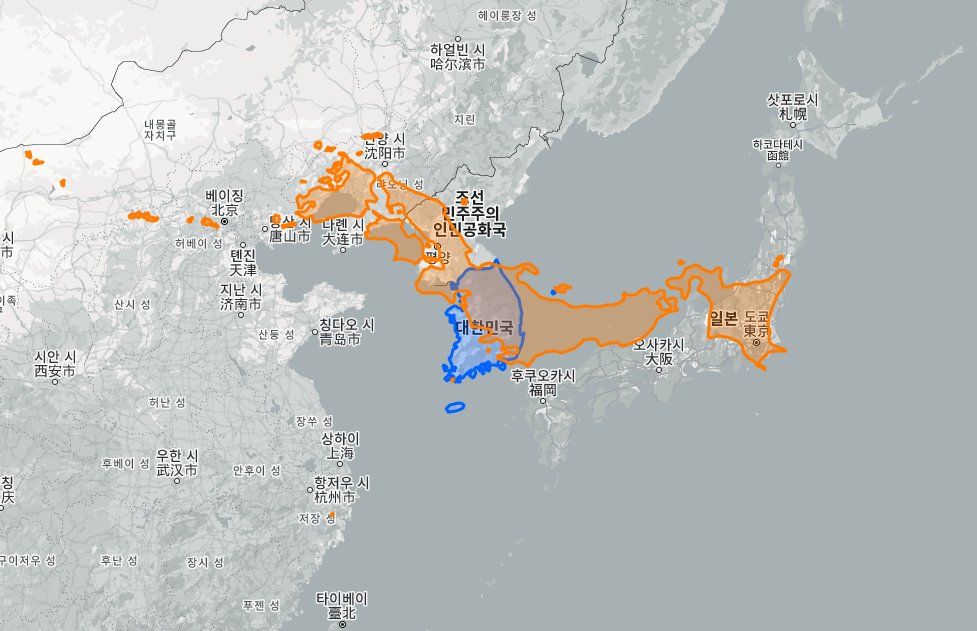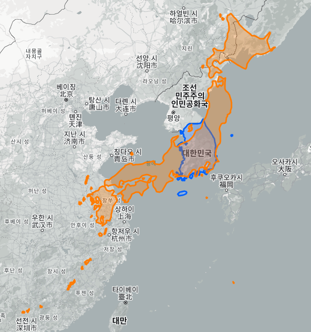 일본 vs 한국 실제 크기, 면적 비교 지도