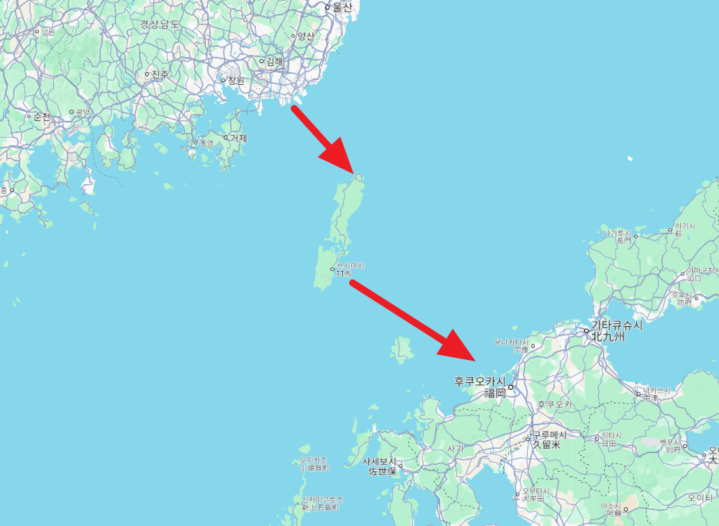 대마도(쓰시마)에서 후쿠오카항 까지 거리: 132km