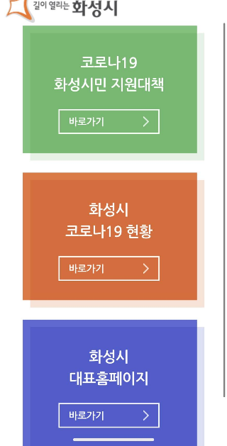 화성시 페이지로 들어가면 현재는 임시 페이지가 나오는데 가장 밑에 화성시 대표 홈페이지 누르시면 됩니다.