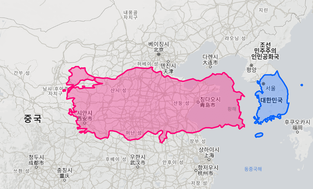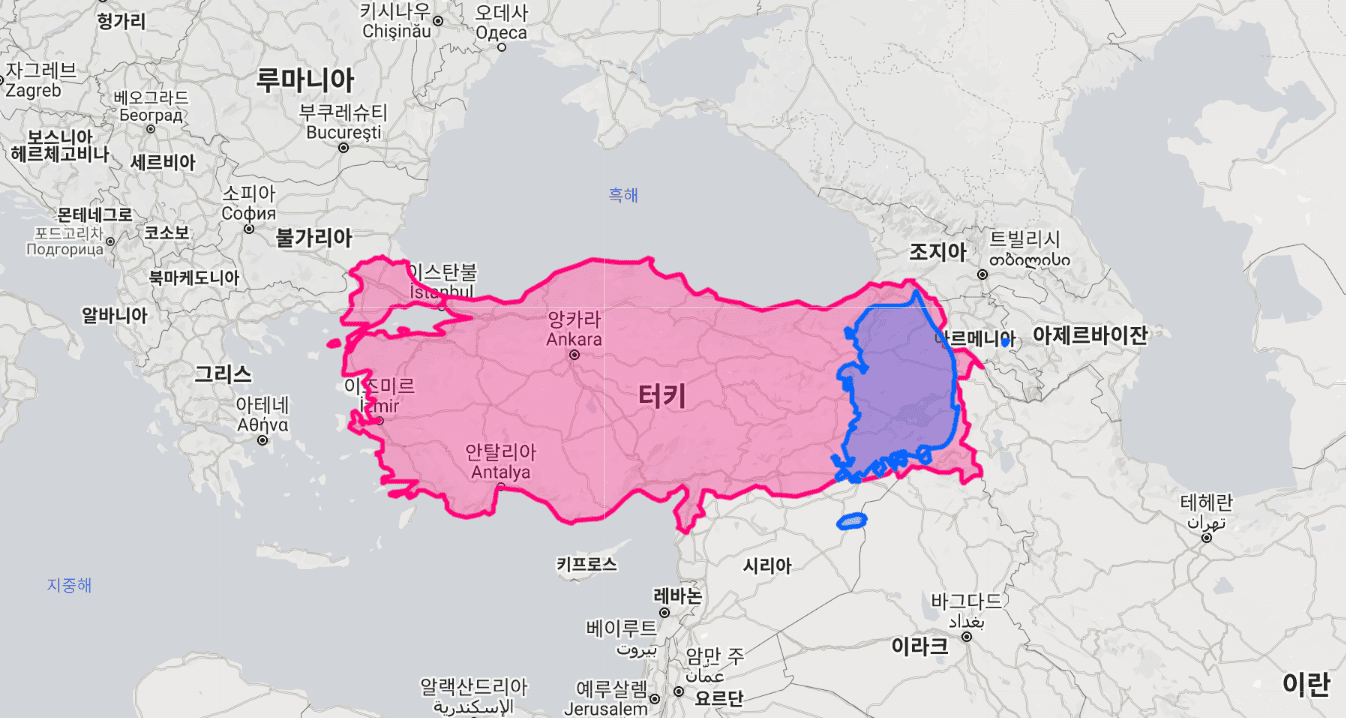 터키 vs 한국 실제 크기, 면적 비교 지도
