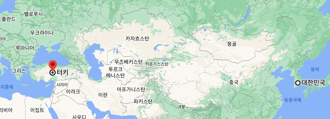 반대로 터키가 한국 옆에 있을 때에 지도 비교