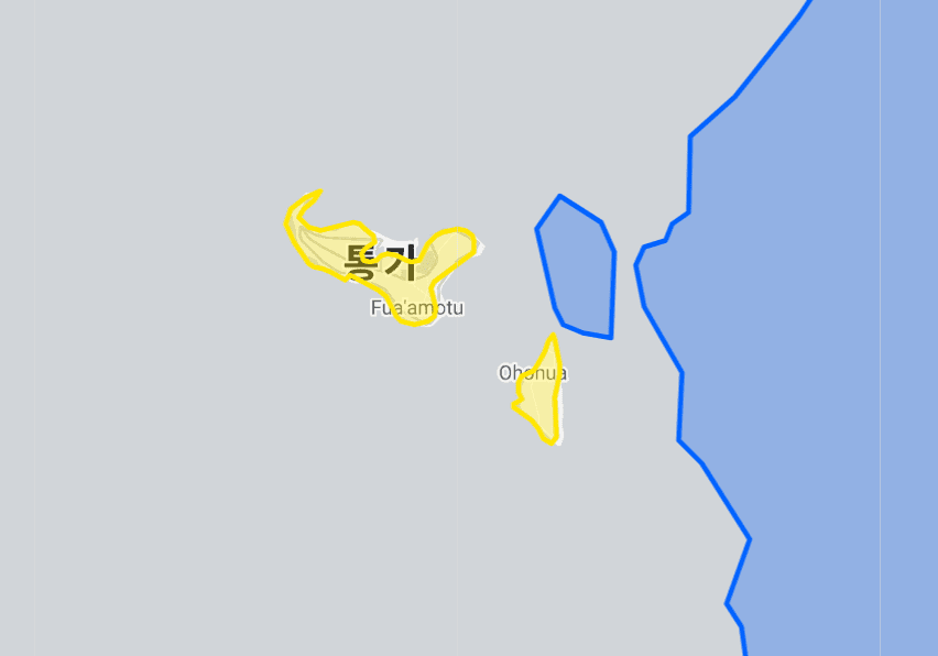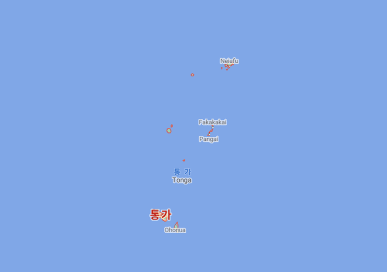 통가 vs 한국 실제 크기, 면적 비교 지도