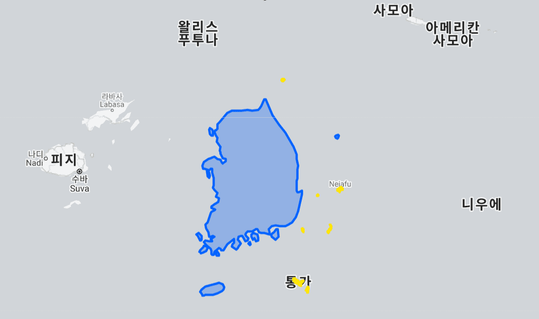 반대로 우리나라 안에 통가가 있는 지도 비교