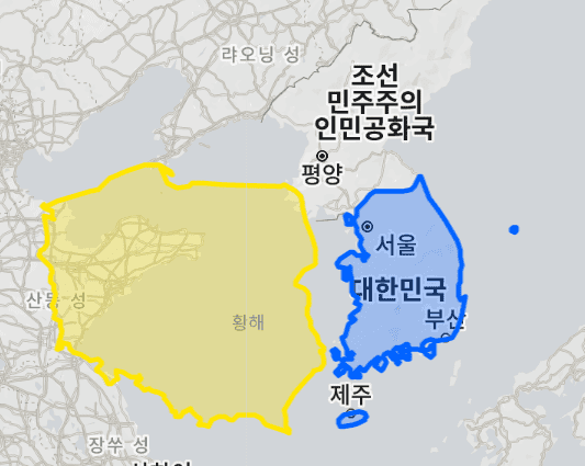 우리나라가 폴란드 옆에 있을 때에 크기 비교