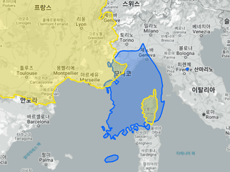 프랑스 대한민국 실제 크기 비교