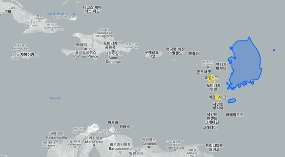 우리나라가 프랑스 안에 있을 때에 크기 비교