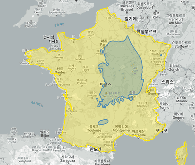 프랑스가 우리나라 안에 있을 때에 크기 비교