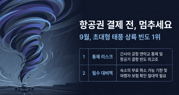 A. 태풍은 예측이 어렵다. 여행 일정 직전까지 일본 기상청의 태풍 경로를 예의주시하고, 결항에 대비해 숙소의 무료 취소 가능 기한과 여행자 보험을 미리 체크해 두는 것을 강력히 권장한다.