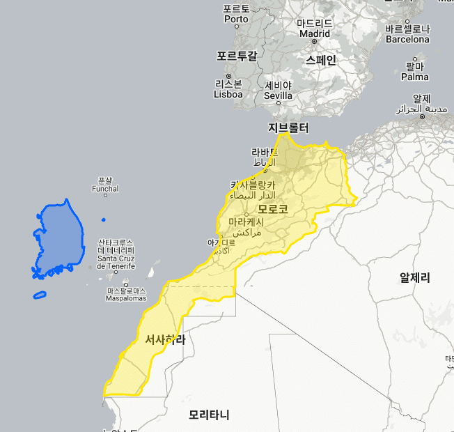 모로코 vs 한국 실제 크기, 면적 비교 지도