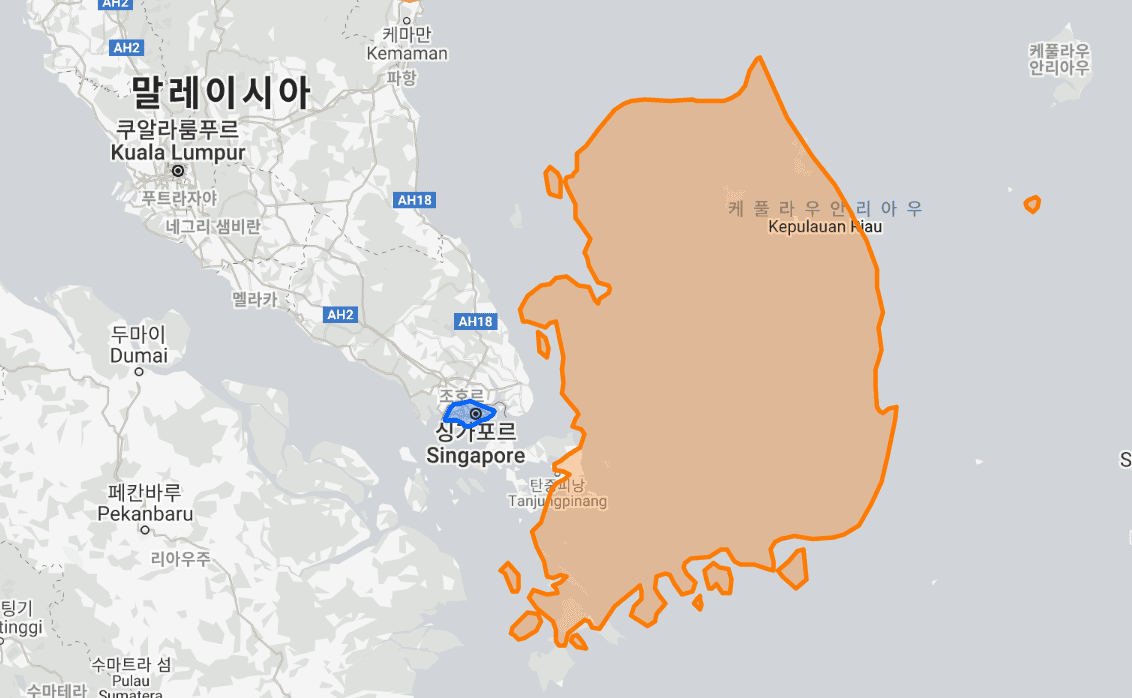 싱가포르 vs 한국 간략 비교 (땅 면적, 인구, 지도 등)