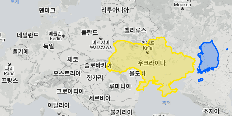 우크라이나 vs 한국 실제 크기, 면적 비교 지도