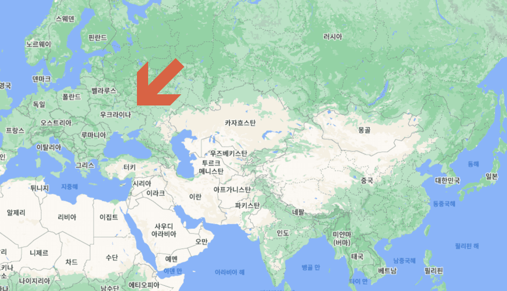 우리나라가 우크라이나 옆에 있을 때에 크기 비교