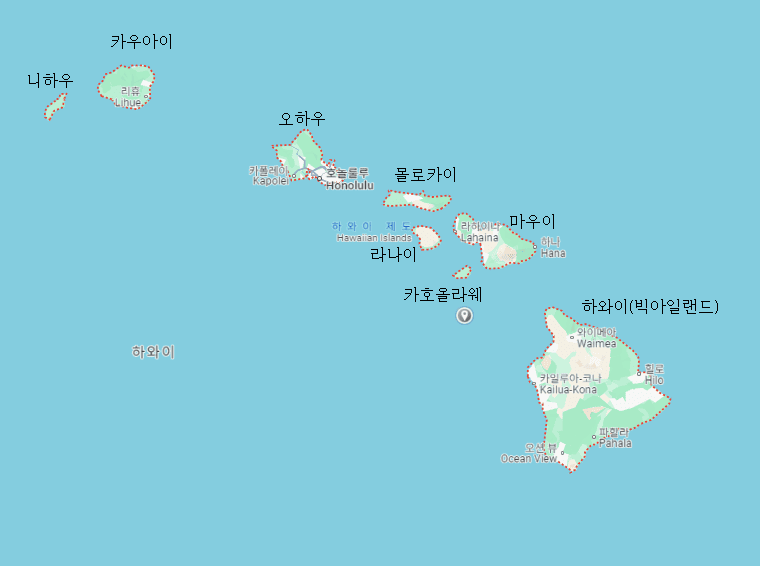 하와이 섬 갯수와 이름